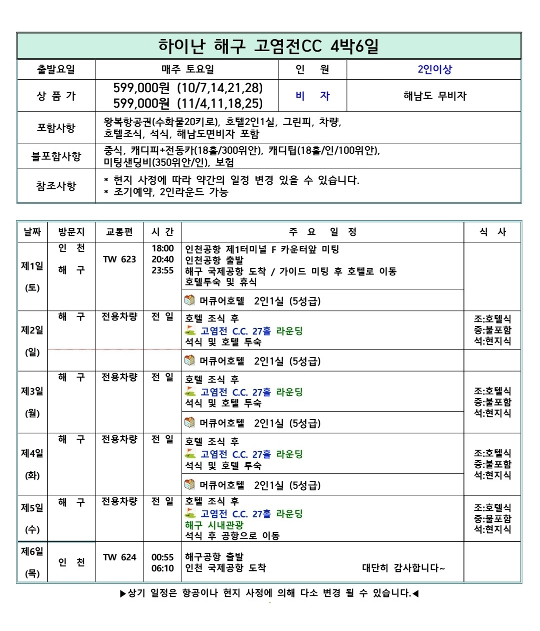 11/4,11,18,25 ์ถ๋ฐ : 599,000์