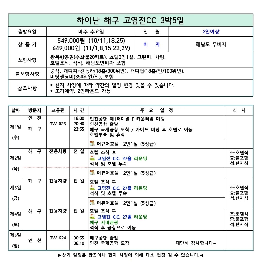 11/1,8,15,22,29 ์ถ๋ฐ : 649,000์