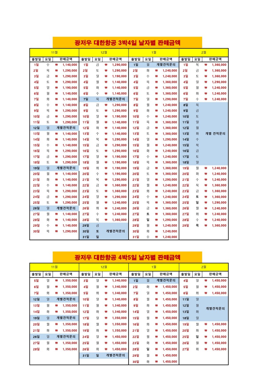 - 항공권 소진시 가격 인상될 수 있습니다.