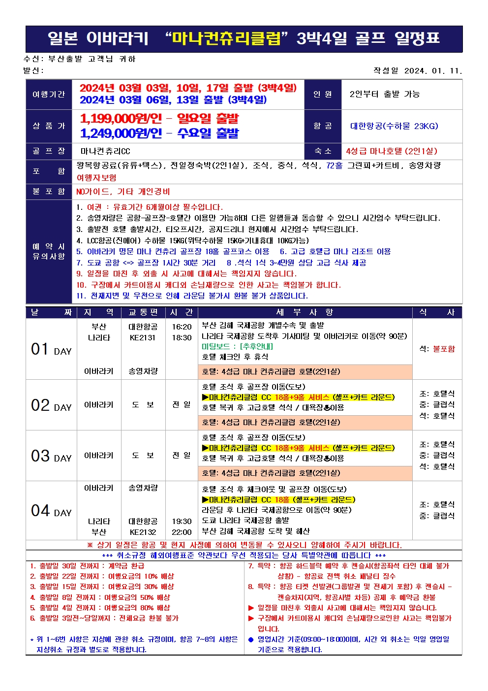 #동경골프 #3월특가 #마나CC #온천무제한 #초특가 #6차특가 #회차별20인