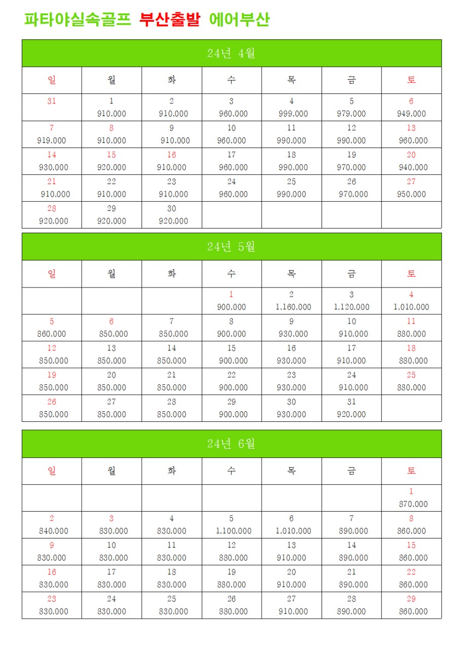 ⭕파타야 실속3색골프 3박5일/4박6일⭕