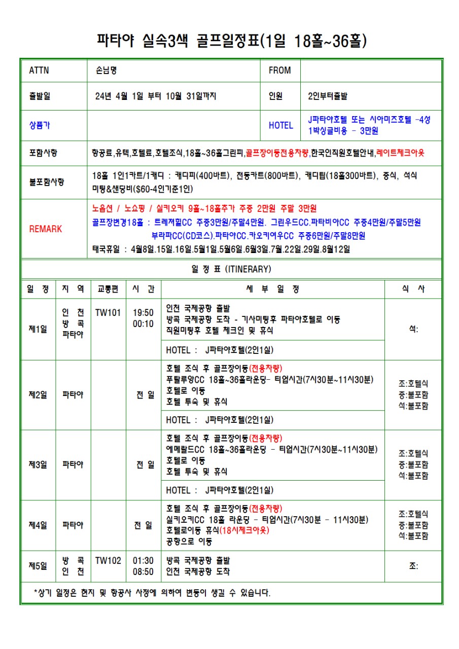 #파타야골프 #비수기특가 #저렴하게떠나요 #파타야시내호텔 #인천청주부산