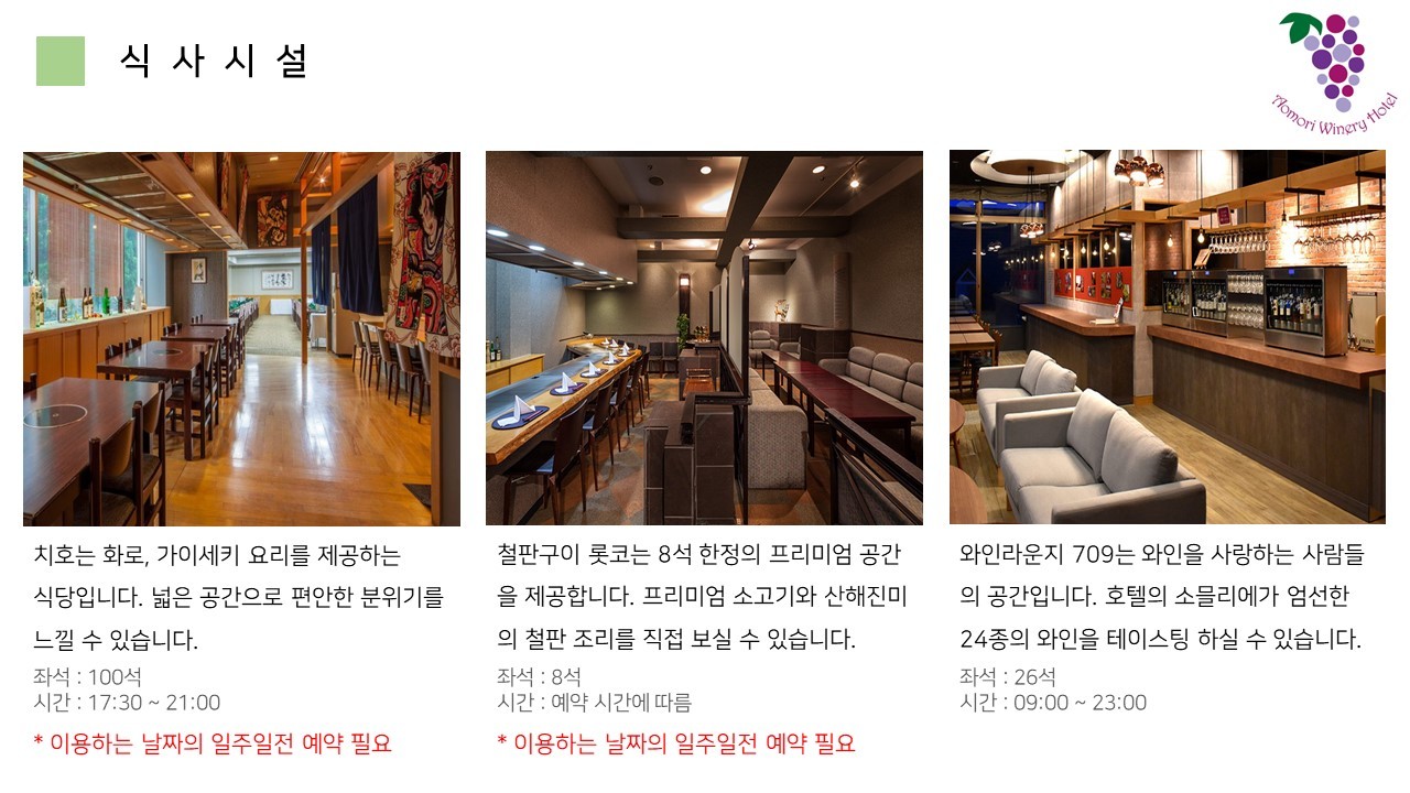 - 8/1 ~ 8/8 아오모리 축제 기간으로 예약 불가합니다.