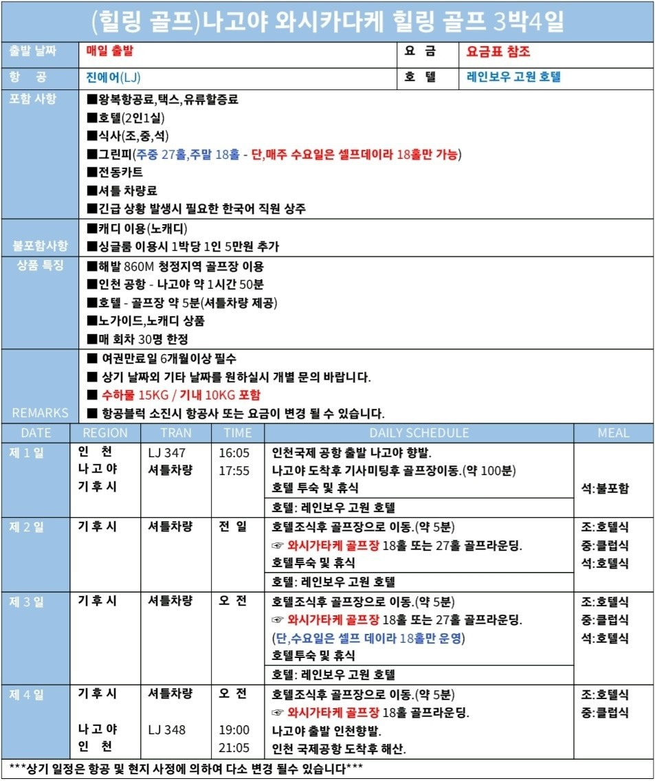 ⛳나고야 와시카다케 고지대 힐링 골프 올포함 ⛳