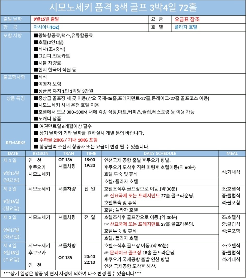 ⛳[추석연휴]시모노세키 품격 3색 골프 3박4일⛳