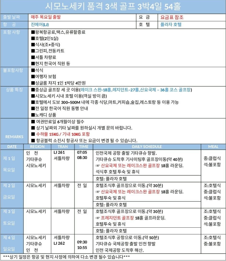 ⛳️골프스케쥴 : 18-18-18-0 <목 출발>