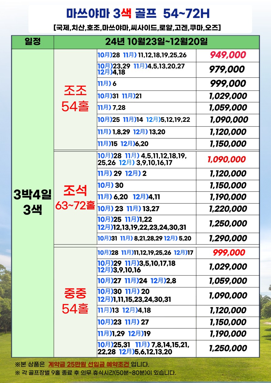 🗓 10월~12월 지정일 3박4일 : 949,000 ~