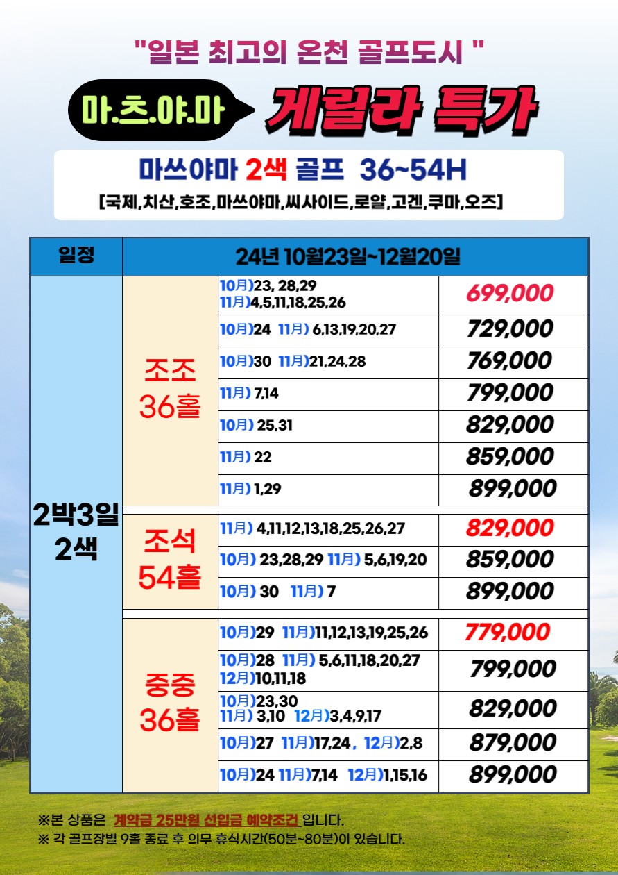 🗓 10월~12월 지정일 2박3일 : 699,000 ~