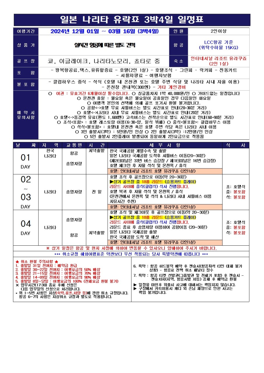 - 여행객 본인의 선택에 의해 골프 포기시 환불 불가합니다.
