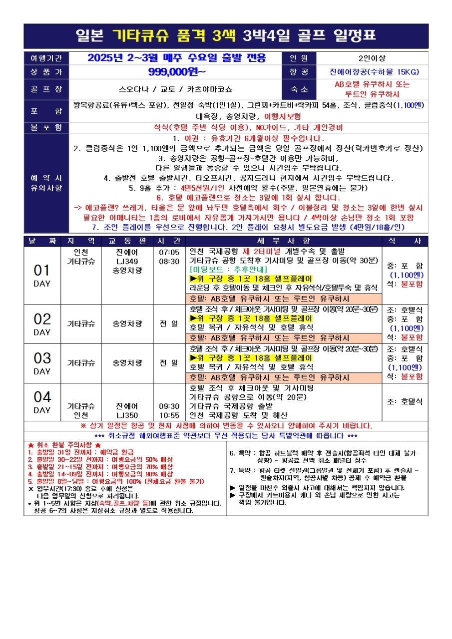 ⛳[삼일절연휴] 기타큐슈 품격 골프<3박4일>⛳