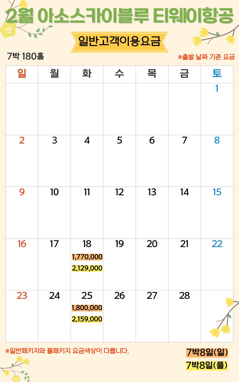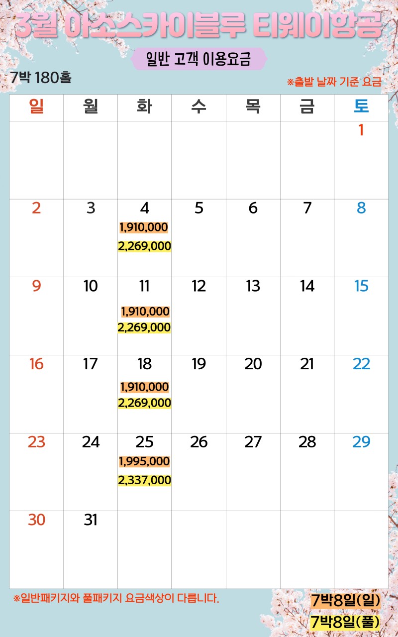 ** 7박8일: (화) 출발 [1,770,000원~]
