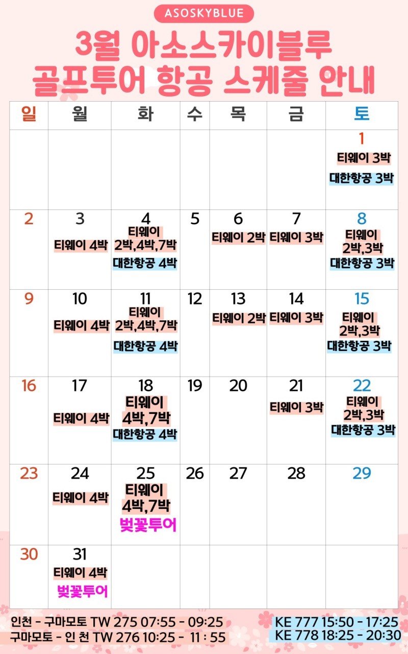 ** [3월25,31일[벚꽃투어+골프] - 1,405,000원~