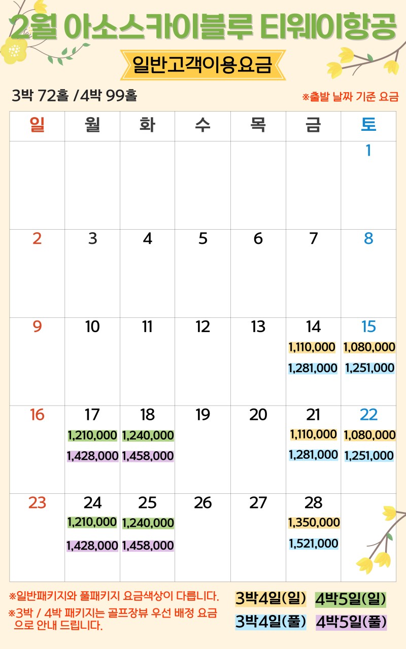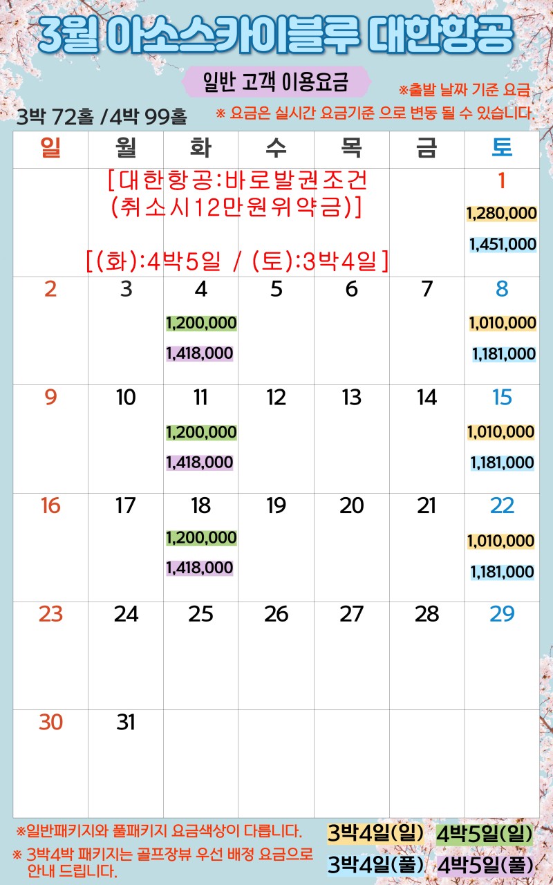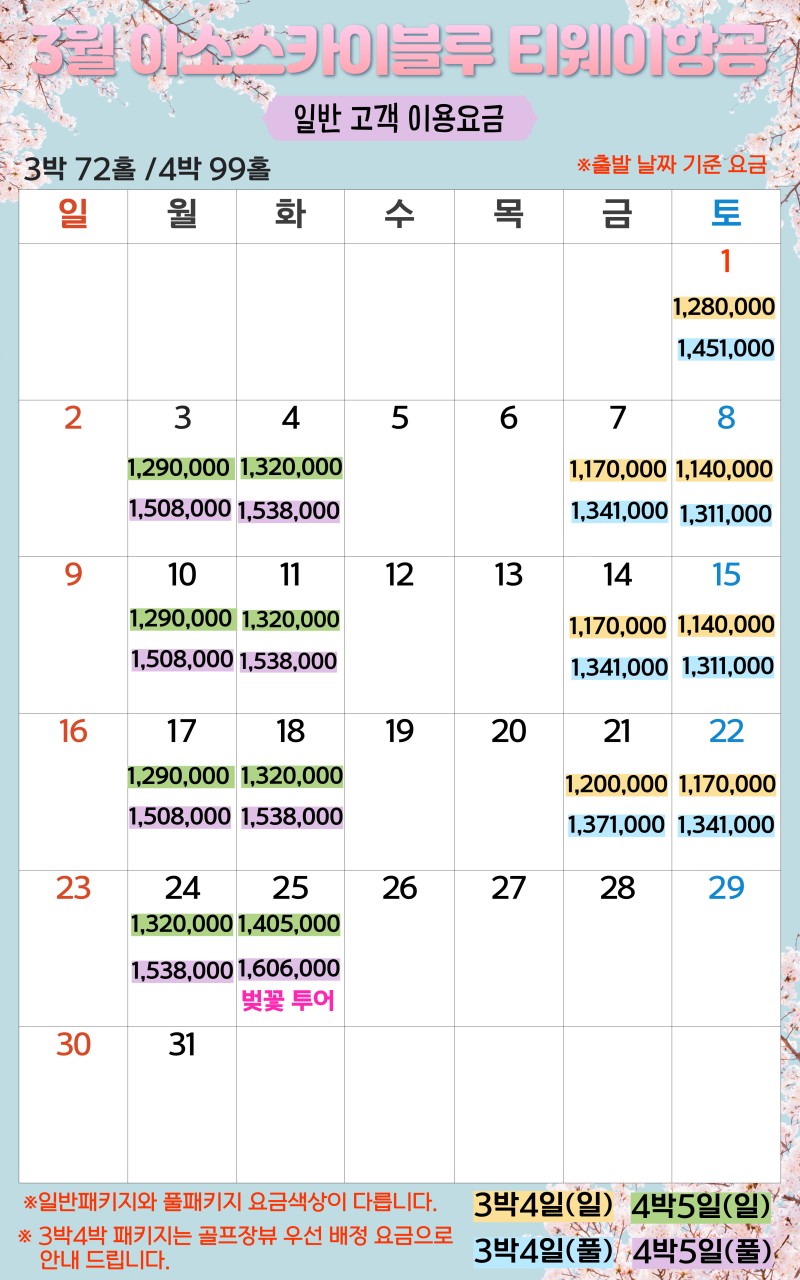 ** 3박4일: (토) 출발 [1,010,000원~]