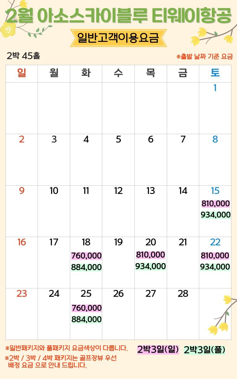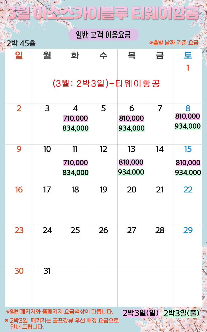 ** 2박3일: (화),(목),(토) 출발 [760,000원~]