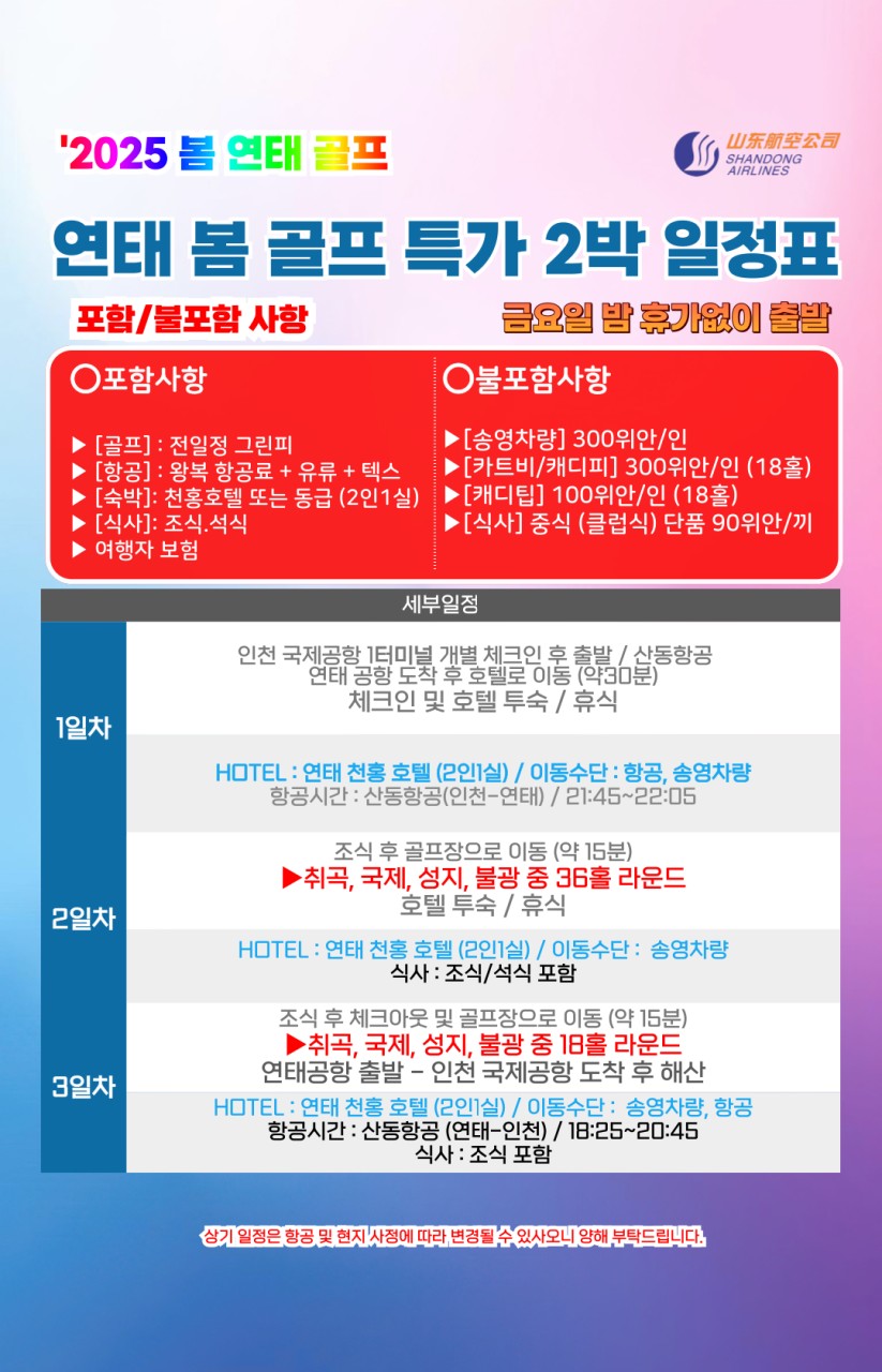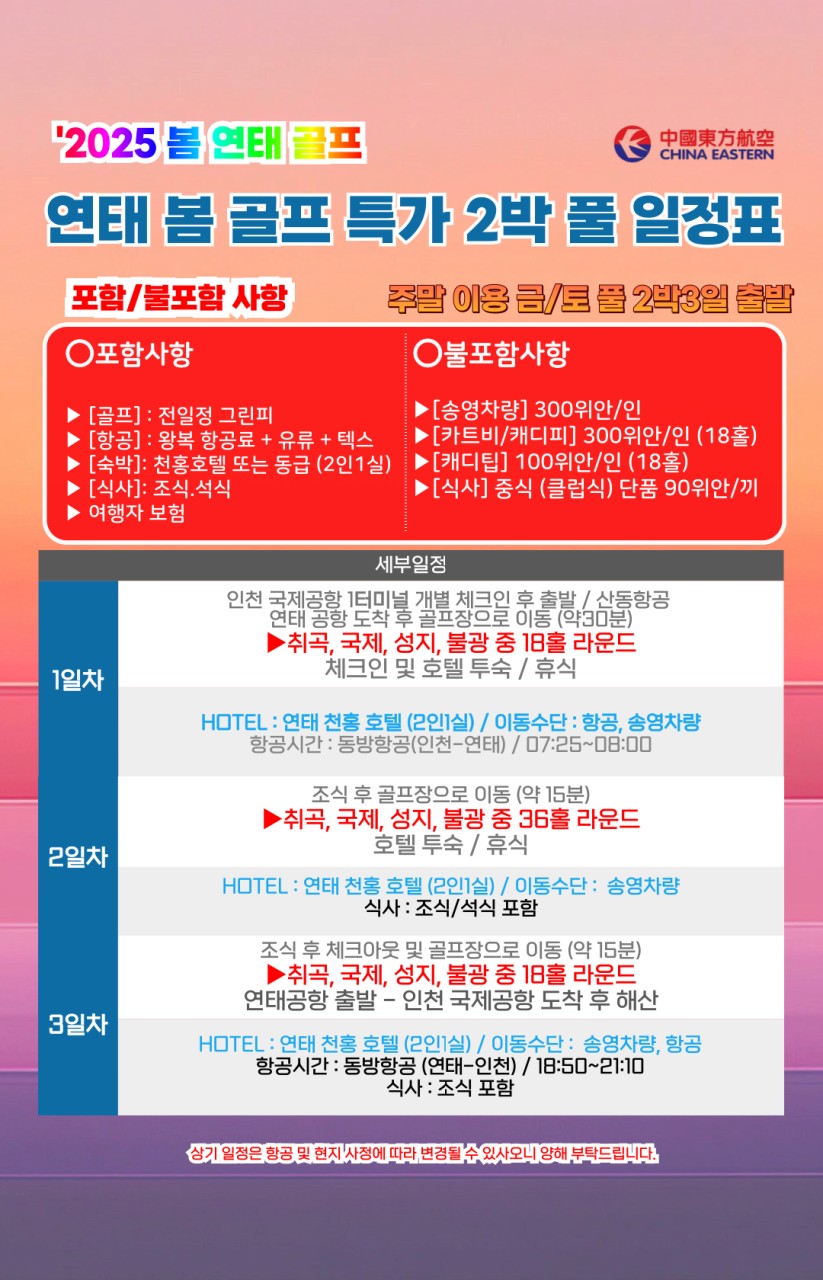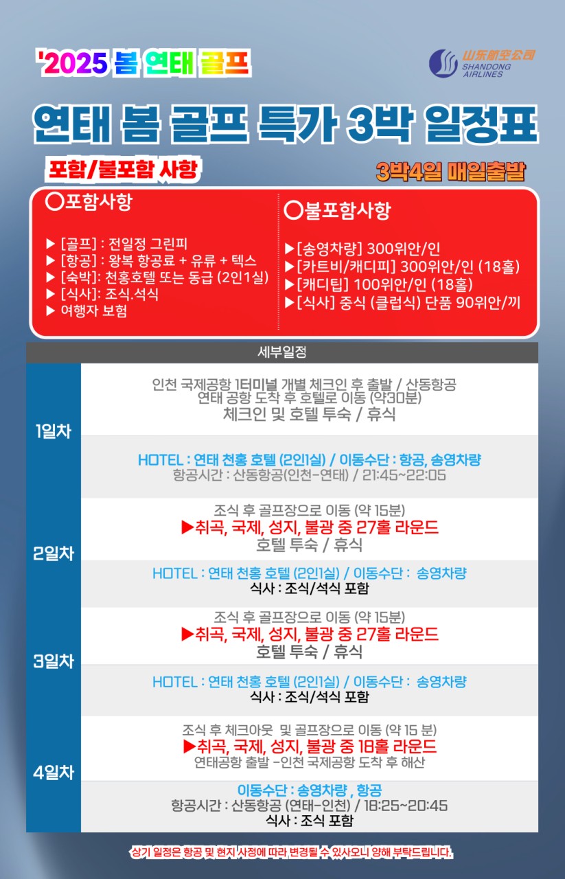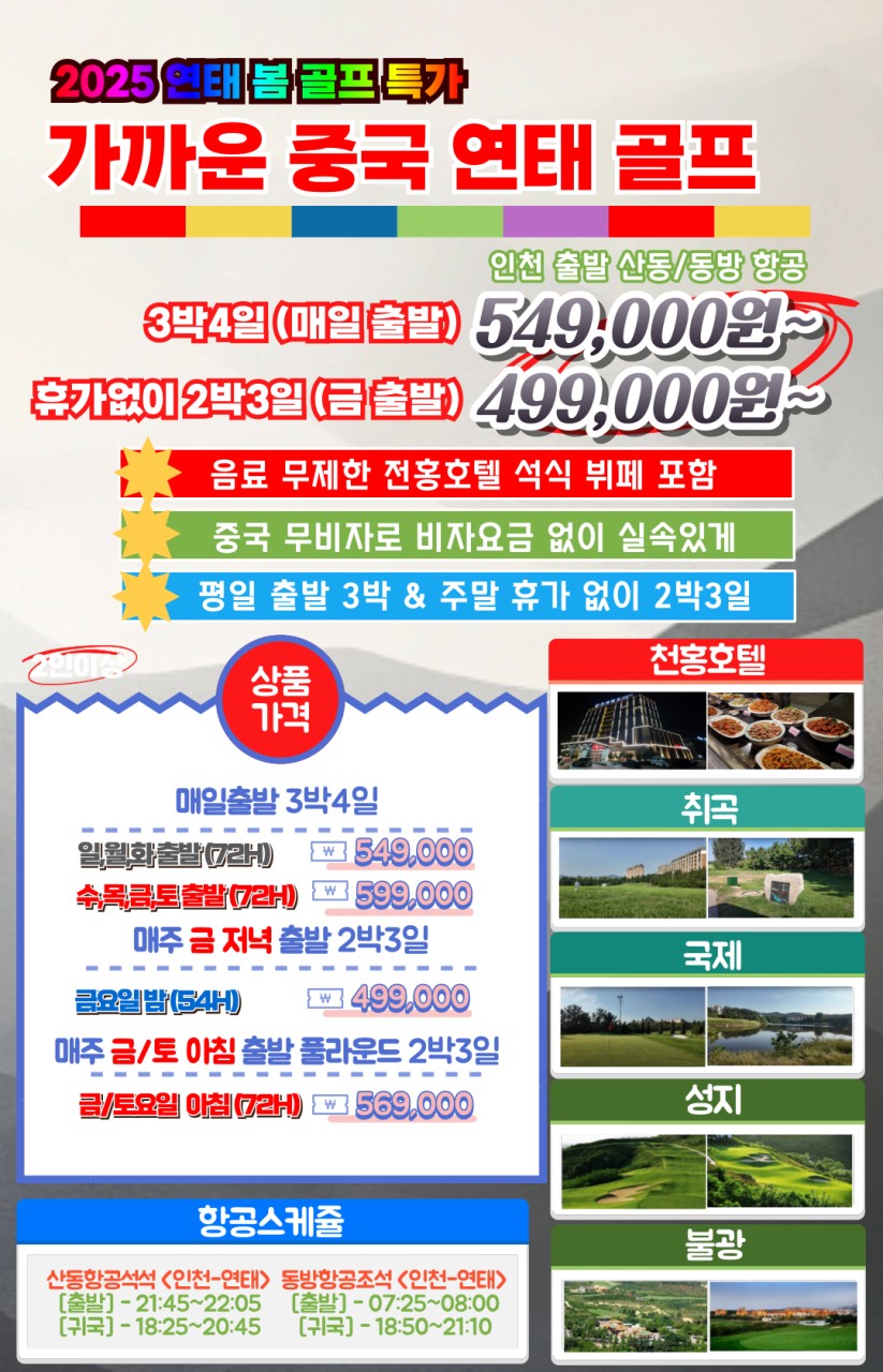 ⛳ 2025 [3월 봄 초특가] 연태 골프 2박/3박⛳