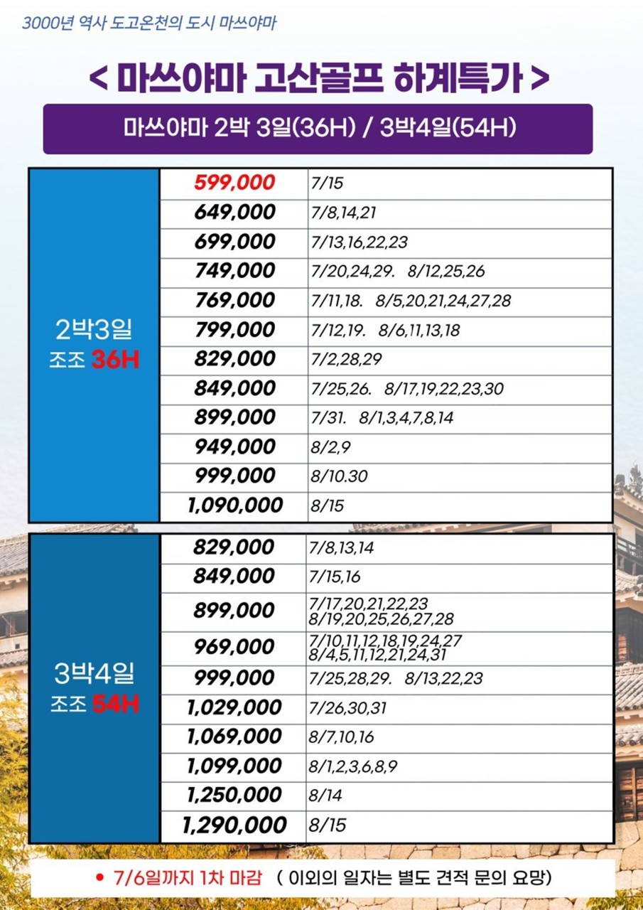 ☄마츠야마 가성비 골프투어 [7/4일까지 특가]☄BESTMDHOT