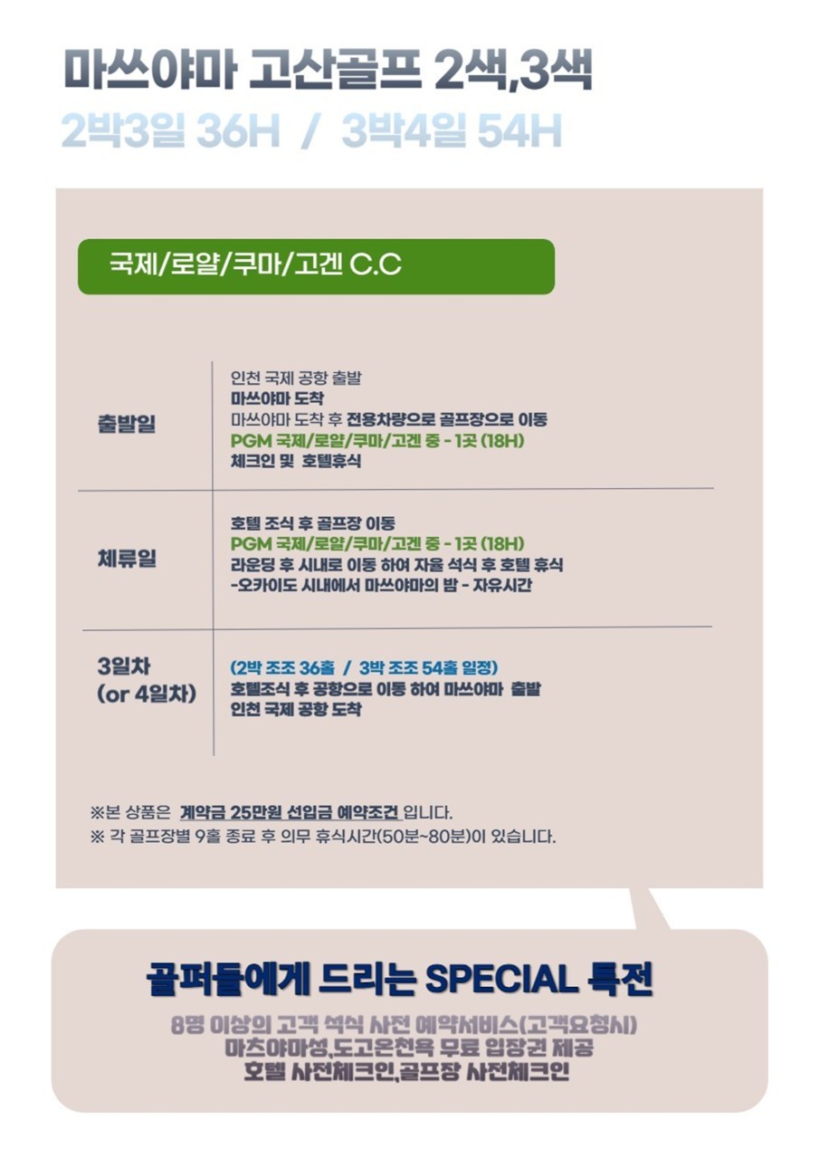 🍀★인천출발 마츠야마 골프 36홀~54홀 게릴라 특가★