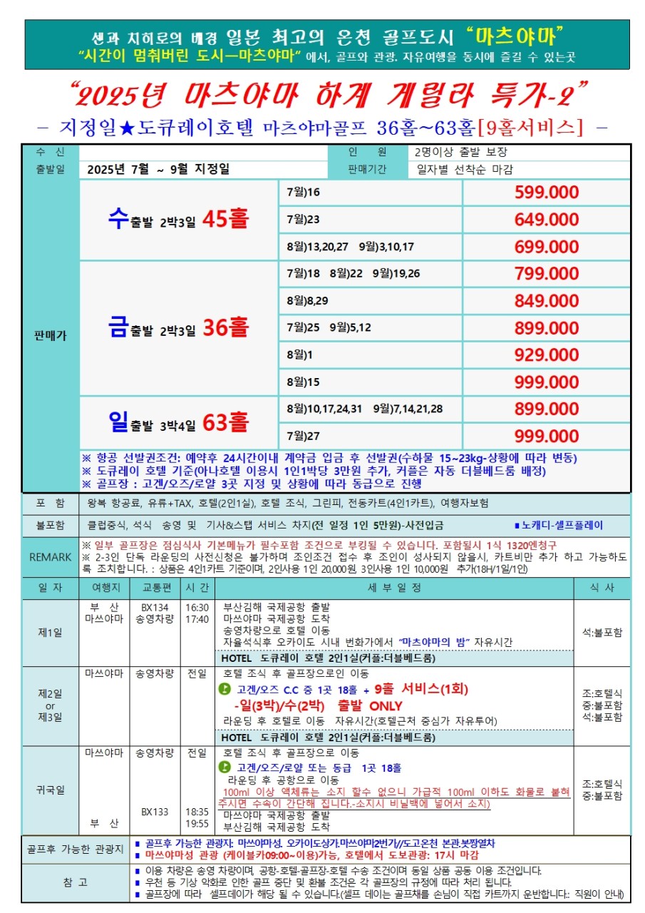 🍀★부산출발 마츠야마 골프 36홀~54홀 게릴라 특가★