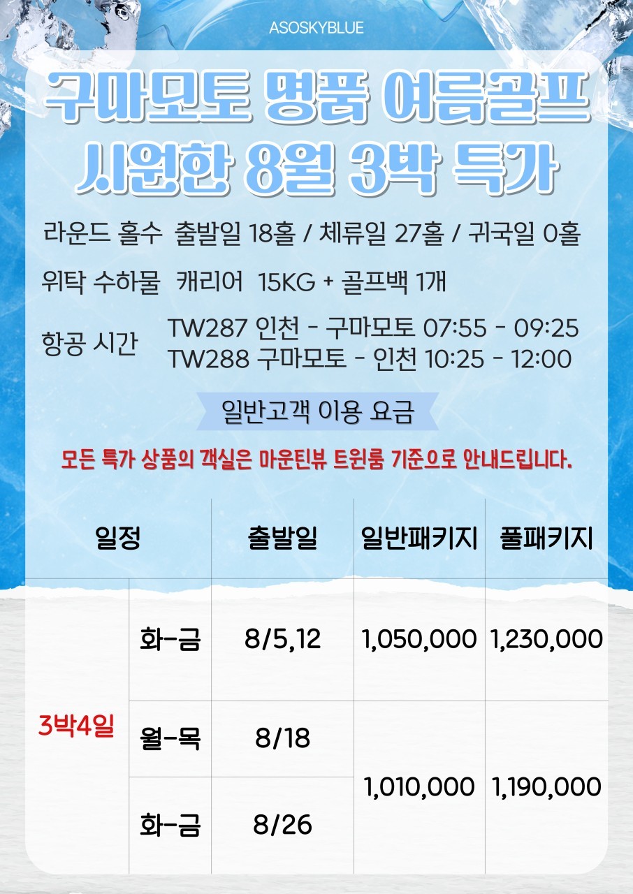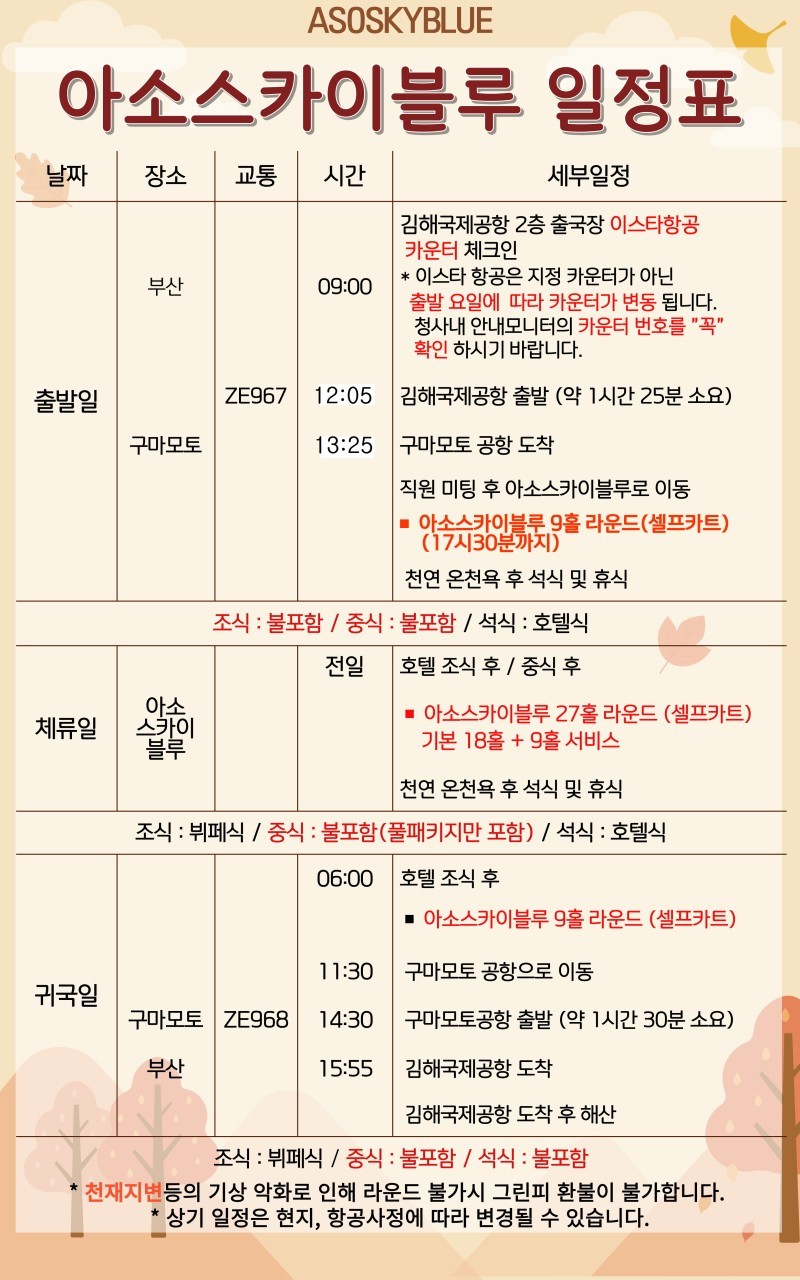 🏨호텔: 아소스카이블루 리조트(2인1실)