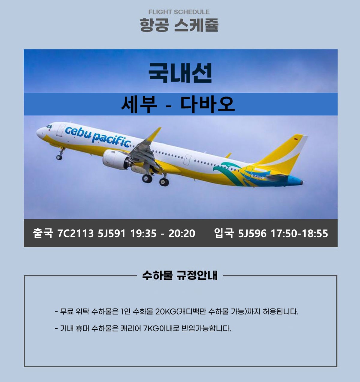 🎁특전: 세부 프리미엄 라운지 1회 + 다바오 라운지 1회 포함