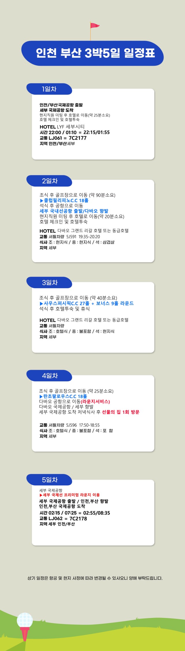 ✈️필리핀 세부+다바오 3색 72홀 골프여행 <3박5일>