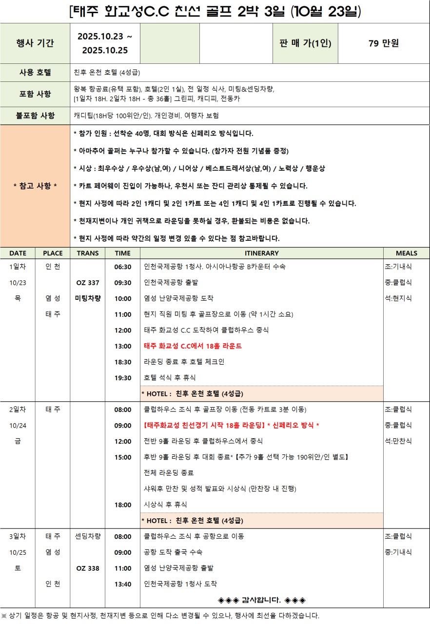 ⛳10월 23일 ~ 25일 [아시아나 항공 이용]