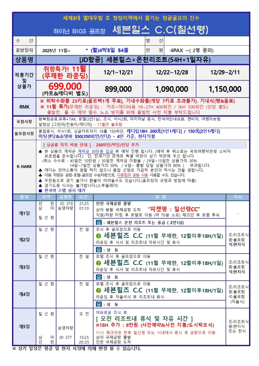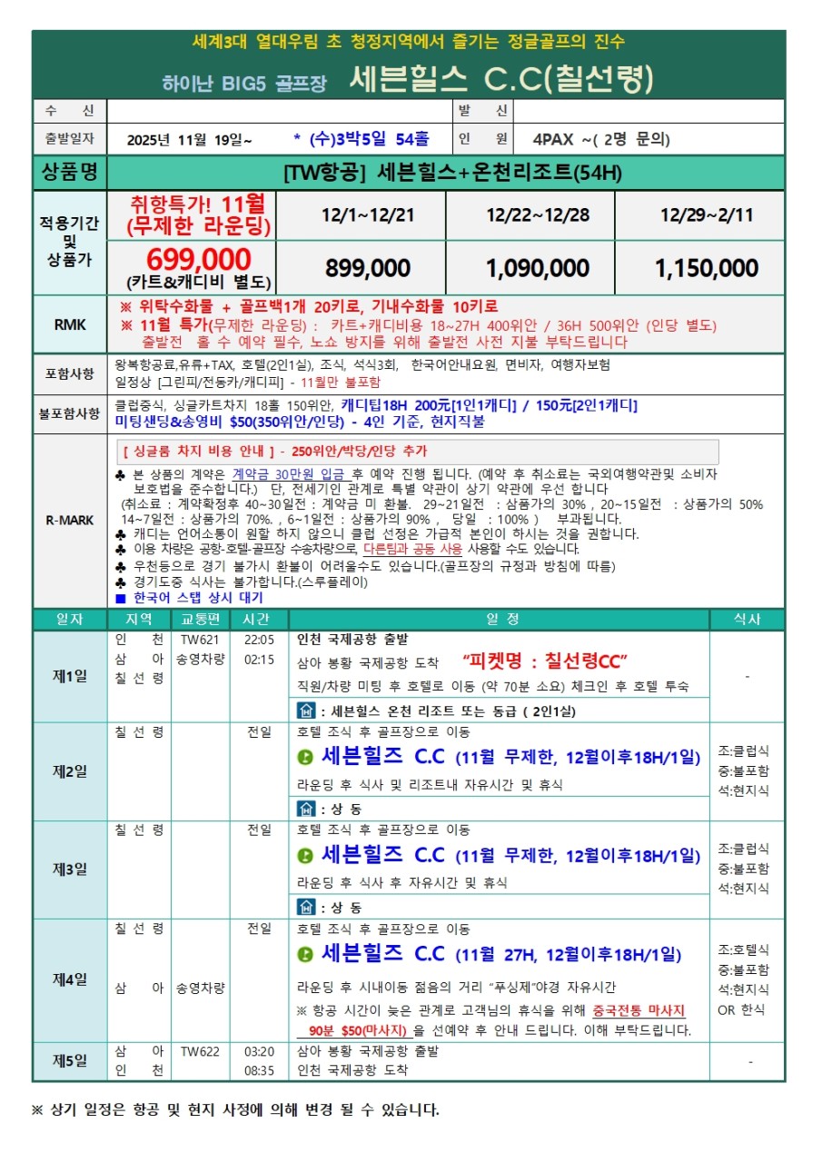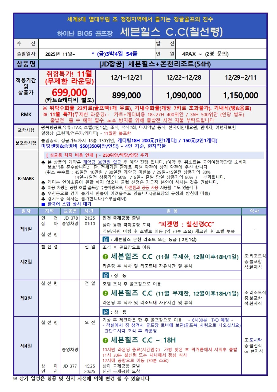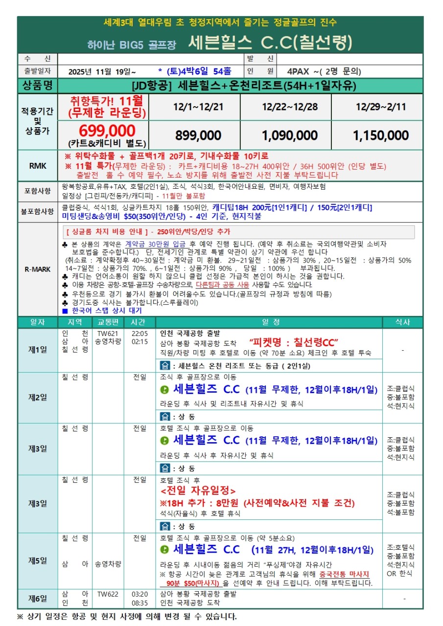 ๐์/๊ธ/์/ํ ์์ผ ์ถ๋ฐ โฉ699,000~