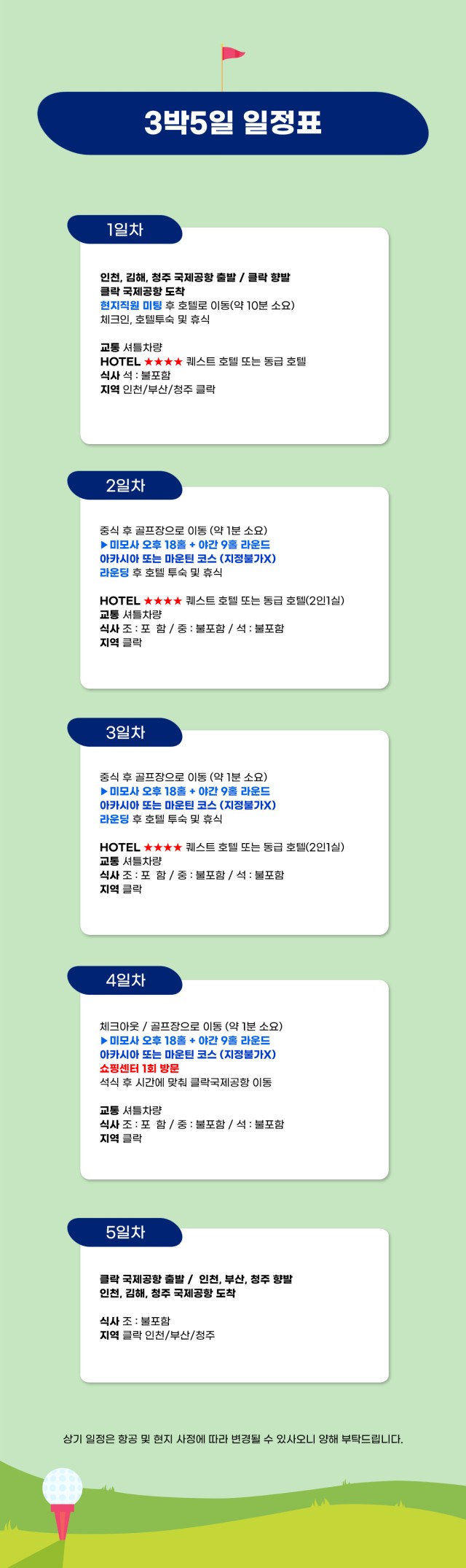 🏌 일정 하이라이트 (3박5일)