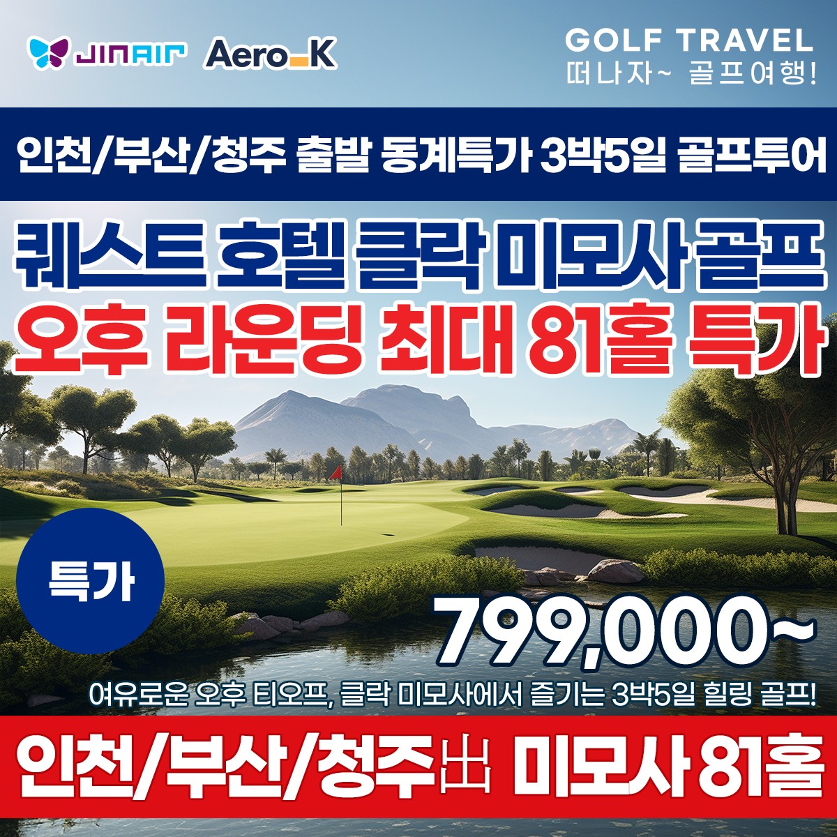 ⛳ 최대 81홀 라운딩 · 3박5일 · 799,000원~