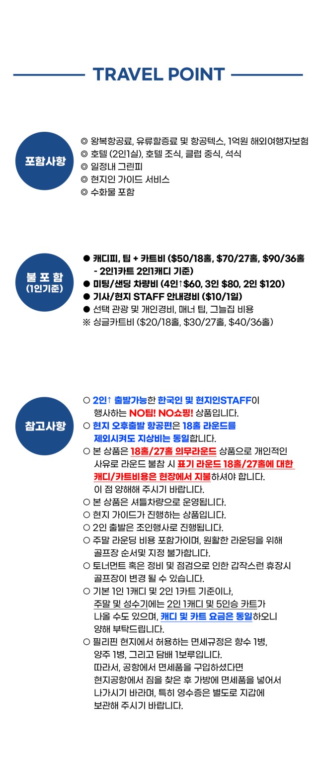 ● 현지 오후출발 항공편은 18홀 라운드를 제외시켜도 지상비는 동일합니다.