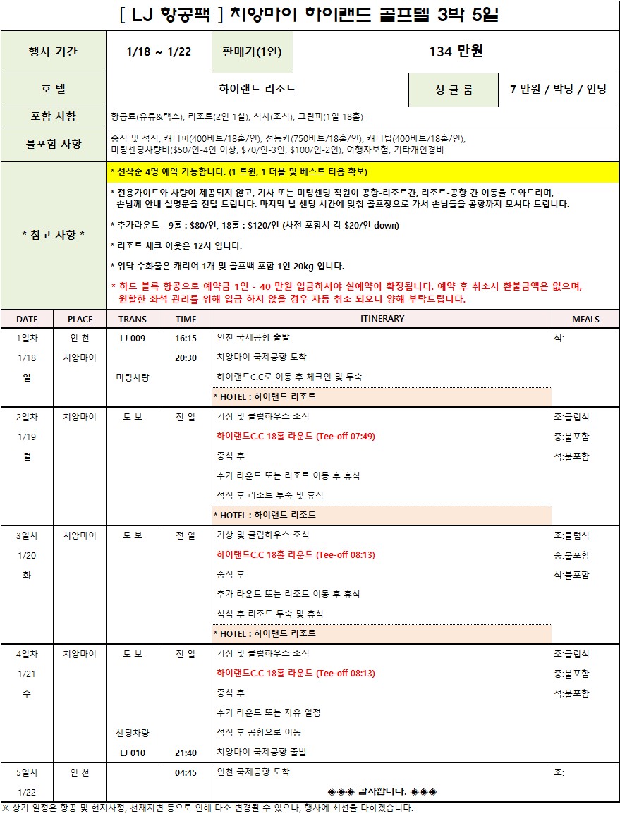 🏌♂ 1월 18일 출발 단독 특가 · 134만원