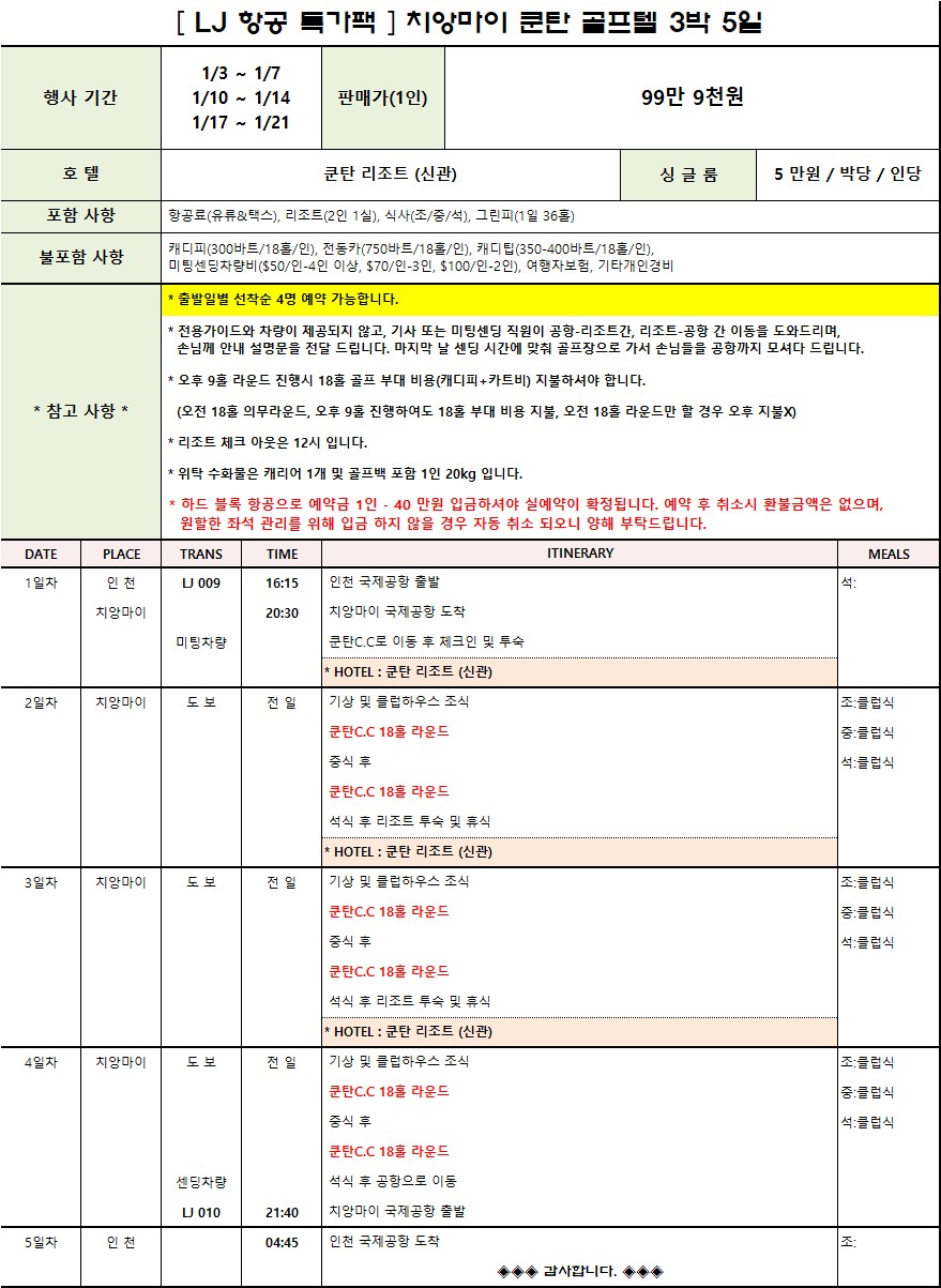 โ1์17์ผ ~ 21์ผ : 999,000์ <3๋ฐ5์ผ>