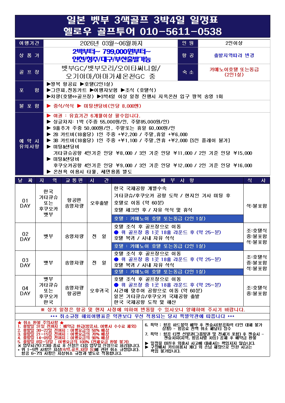 ⭕️ (3박4일) 골프3회 (평일) : 999,000원~
