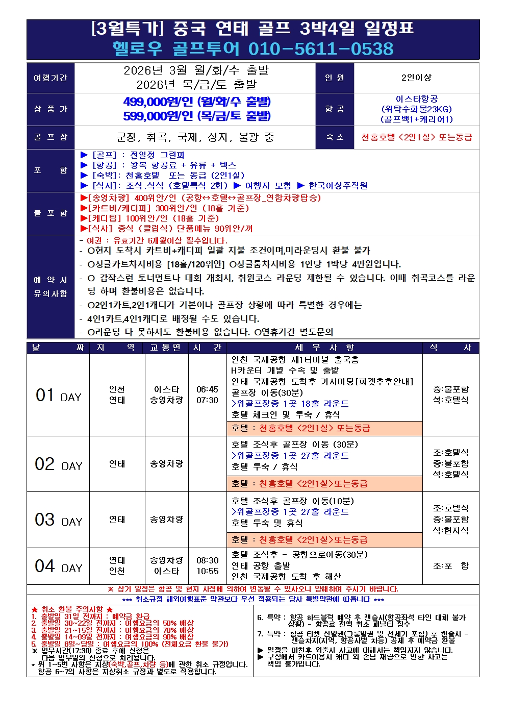 ⛳ 가까운 중국 연태 가성비 골프 [3월특가]