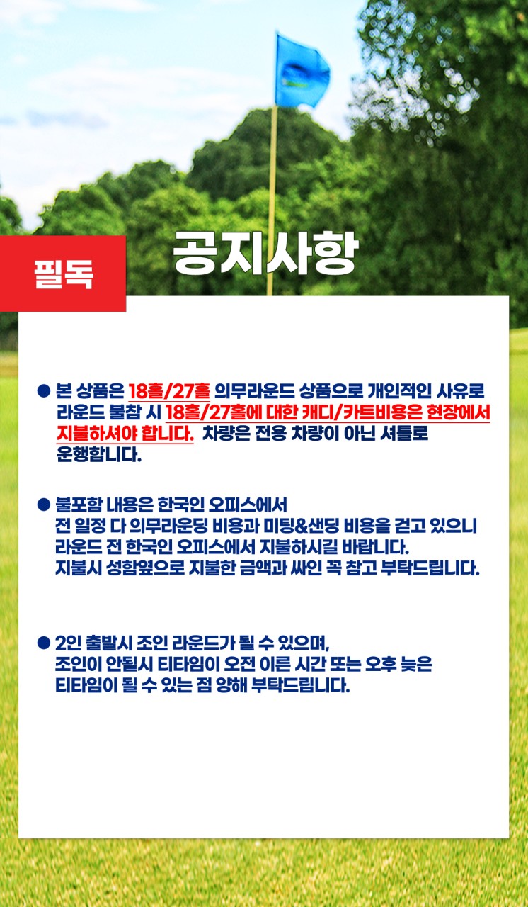 - 18홀 / 27홀 의무 라운드 상품
