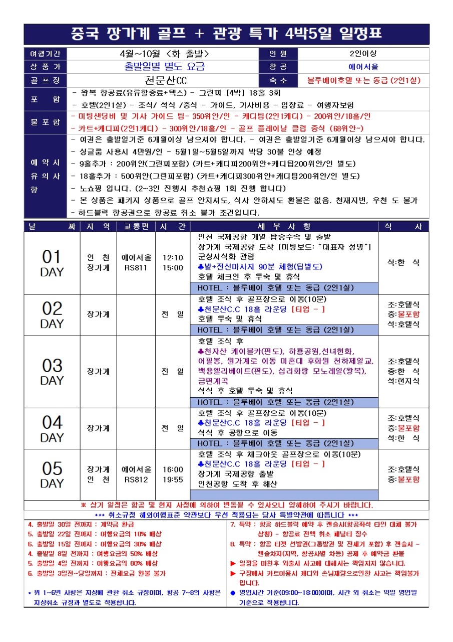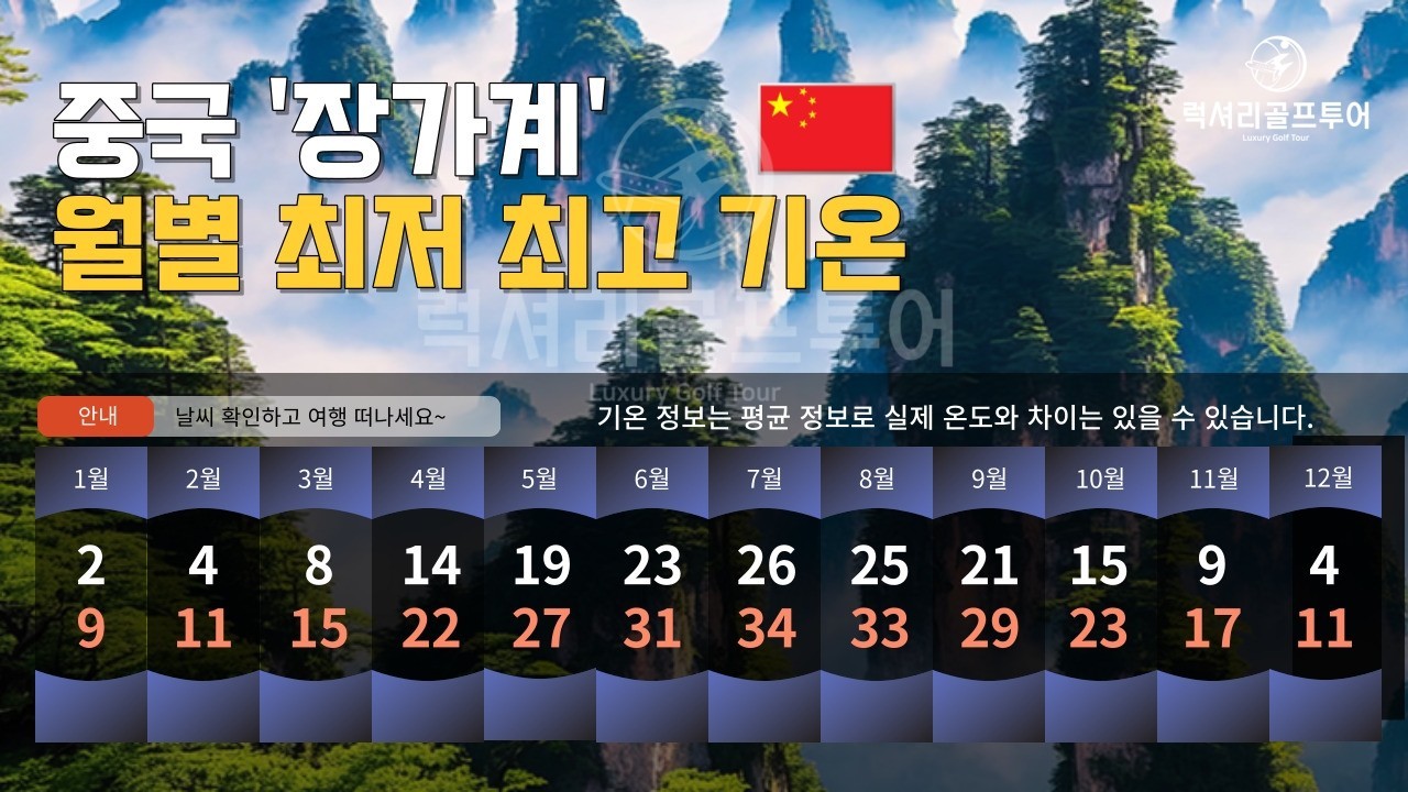 ⛳중국 장가계 골프+관광 <4월~10월>⛳NEWBESTMDHOT