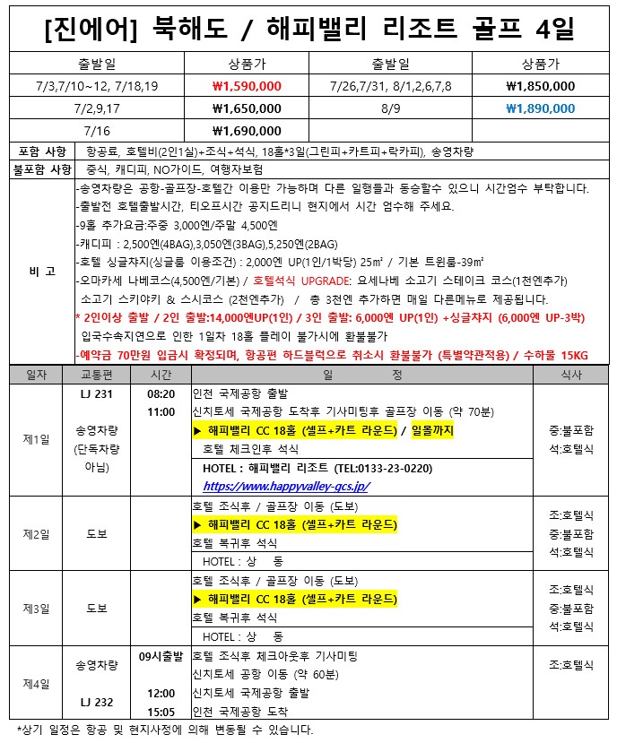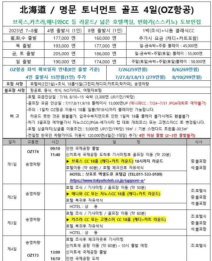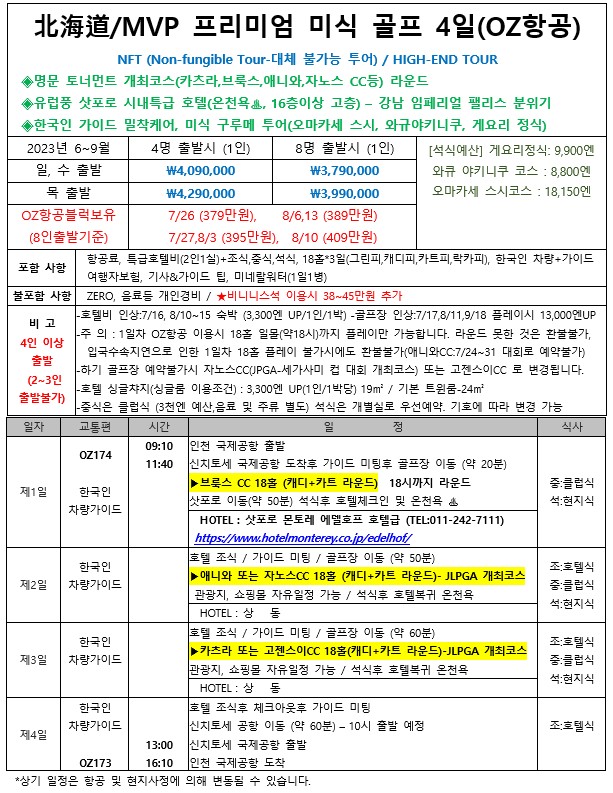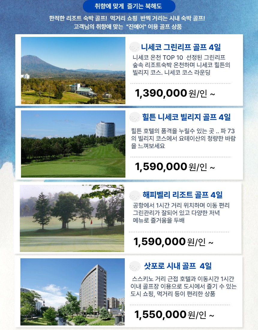 [북해도] 취향에 맞춰 떠나는 북해도 4종 골프 패키지