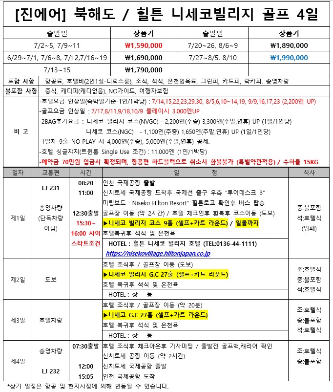 2. 힐튼 니세코 빌리지 골프 4일 (2인출발 가능) 159만원~
