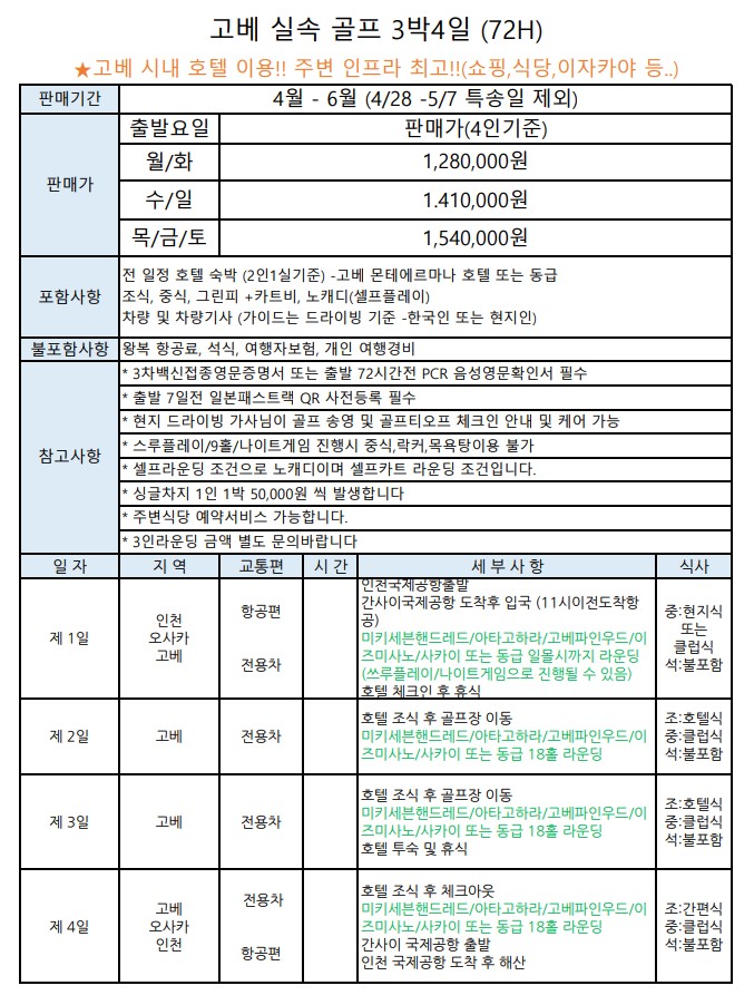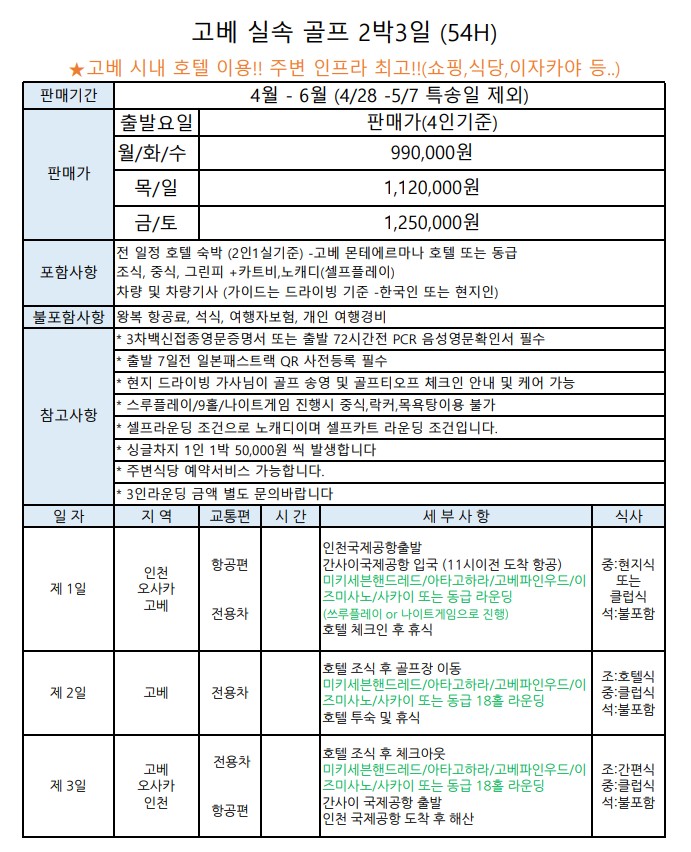 ⭐일본 고베 실속형 골프 상품!!⭐