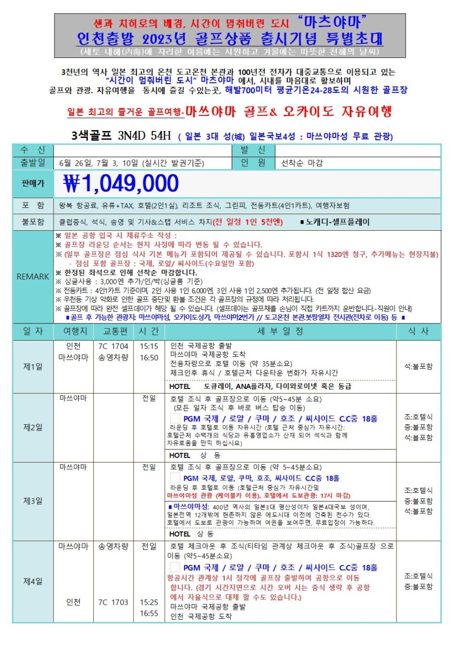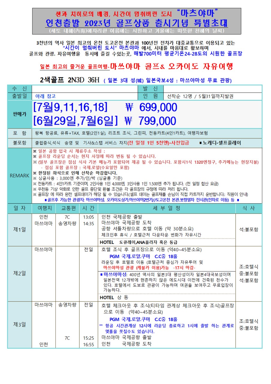 특별한 초대 마츠야마 고산 골프-2박3일/3박4일