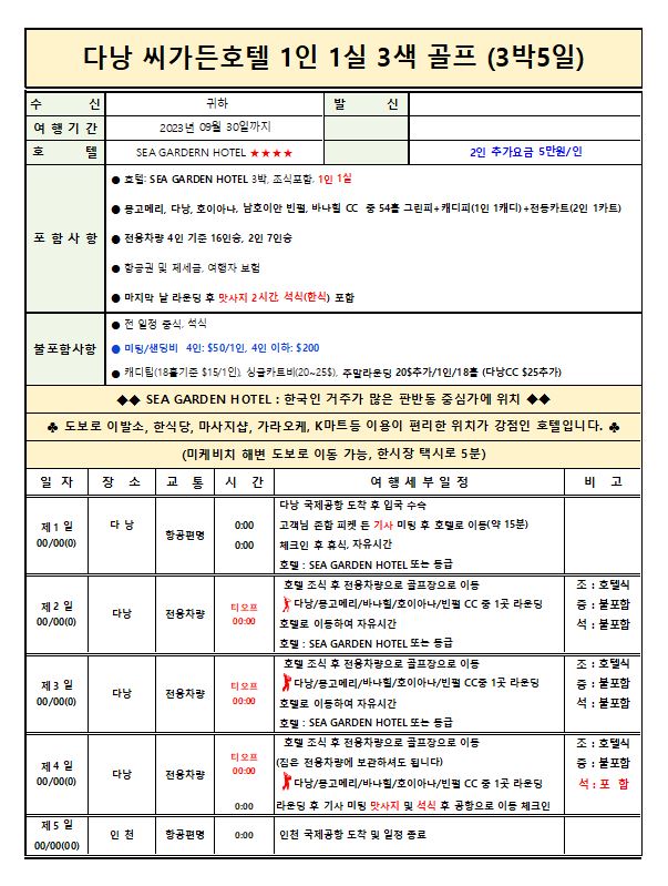 ✈다낭 시내호텔 3색골프 ✈