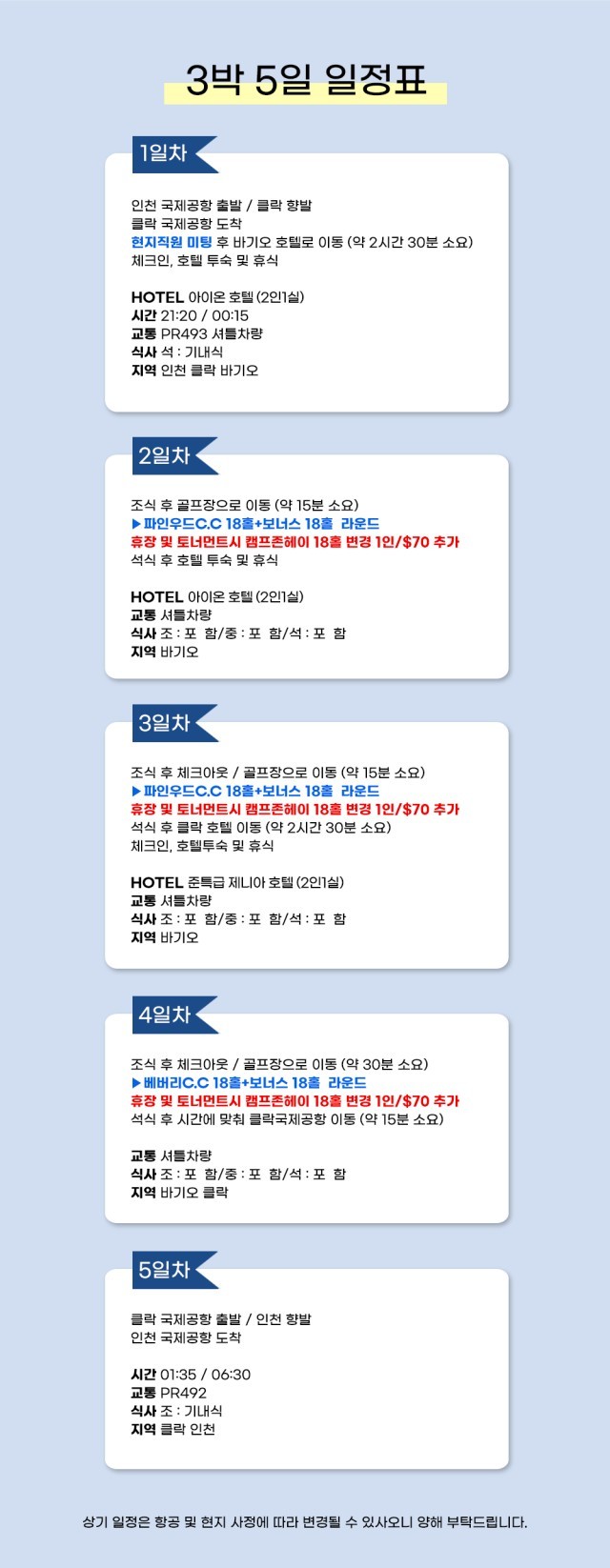✈쿨한도시 바기오 + 클락 무제한 라운드 3박5일✈